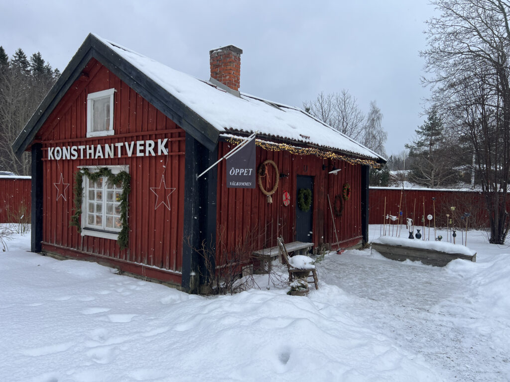 Då vår son fortfarande bor kvar har drömmen fått vänta – men förra helgen fick den liv igen. Jag var på en fotoutställning i Stockholm, i Åkersberga Konsthall, där jag deltog med några av mina bilder. På området fanns flera små röda hus – ett café, en liten butik som sålde keramik, och konsthallen.