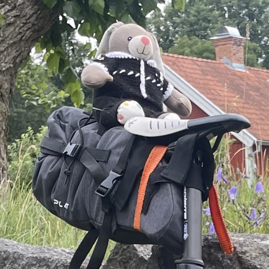 Den senaste längre resan jag gjorde, 2023, var annorlunda. Då fick nallen symbolisera mig själv. Jag hade haft en tuff tid bakom mig och självförtroendet hade börjat dala. Så den gången cyklade jag för mig, för att påminna mig själv om att jag duger.